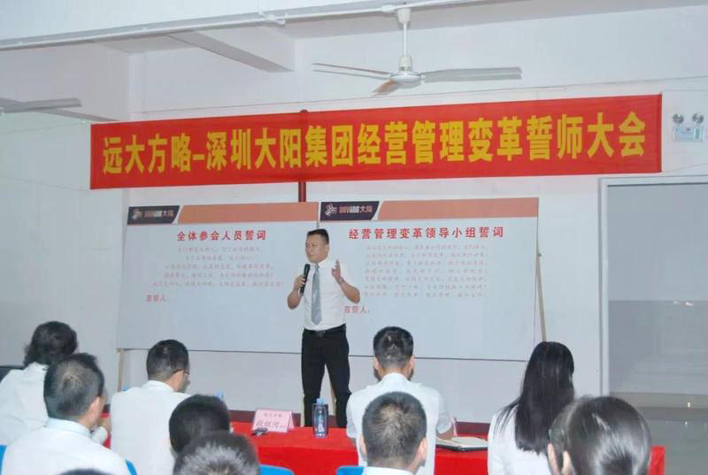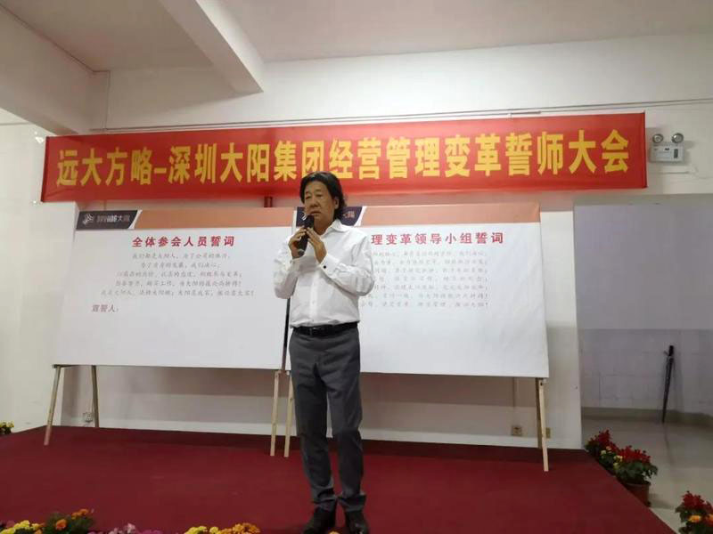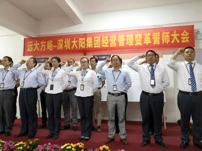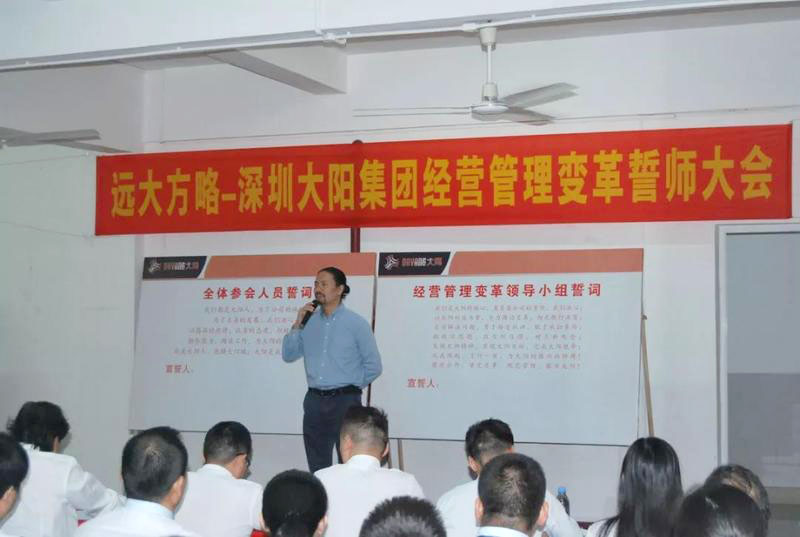 “誓師大會的召開標志著大陽集團調研工作的結束和大陽集團經營管理變革工作的開始,企業管理變革只有開始沒有結束;企業管理變革會有一個痛苦的過程,不經歷風雨怎么見彩虹,但痛苦之后一定會收獲喜悅;變革中我們需要相互精誠合作、統一方向、為完成變革使命全力以赴。”