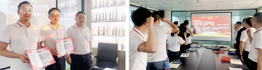 現場還為企業內訓師頒發了證書。整齊有力的宣誓聲拉開了金霸科技新一期變革的序幕,激勵金霸科技全員持續投身變革,實現自我價值與公司價值的共同提升。