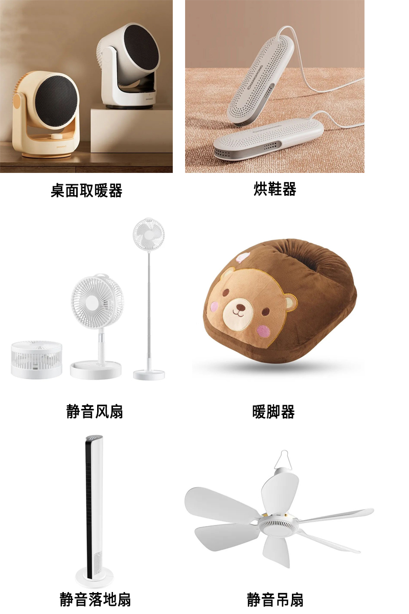 公司產品主要包括:電風扇、烘鞋器、暖風機、加濕器等,主要業務區域集中在長三角,目前設有慈溪、余姚、長沙三個成品倉庫保障線上及線下產品的快速供應,并與多家生產加工商和代理商建立了長期穩定的合作關系。