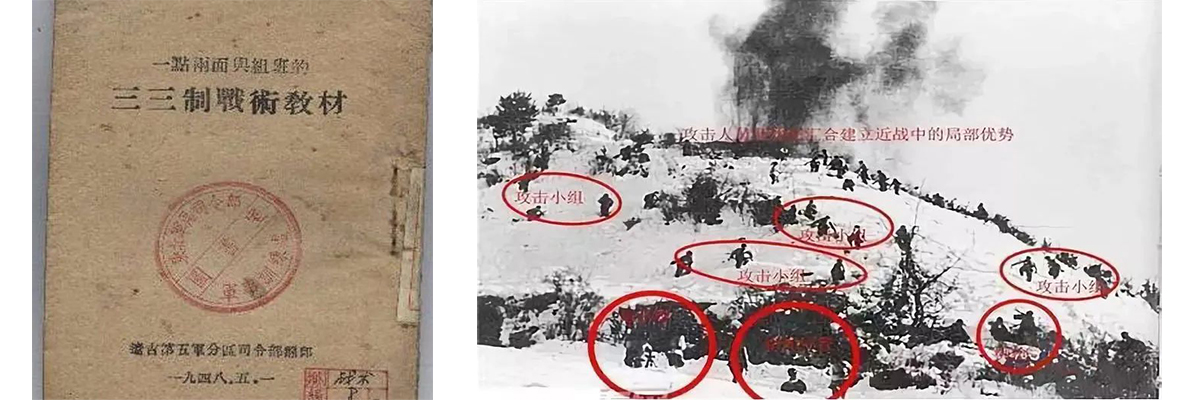 三三制戰術較早起源于抗日戰爭期間,成熟于國共內戰,大量運用于抗美援朝戰爭,是我軍步兵訓練大綱中的一種步兵“班組突擊”戰術。在抗美援朝期間,憑借著這種戰術,我志愿軍戰士,在抗美援朝的戰場上,將裝備精良且人數眾多的聯合國軍打得暈頭轉向,甚至多次進攻至美軍的核心陣地。也是運用三三制戰術,志愿軍還將英國特遣隊全數殲滅,另外在對印的作戰中,三名志愿軍戰士利用三三制戰術,大膽縱深敵陣近十公里,連奪多個印軍炮兵陣地。類似的例子很多。