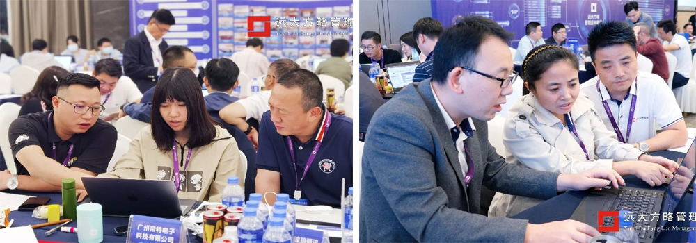 課程中,老師全程開啟巡場模式,輪流到各小組輔導學員制定適合自己企業的經營分析報告、業務報告、部門年度經營計劃書、企業戰略地圖等實用報表。還為大家提供了差距分析、SWOT分析、PESTEL分析、商業畫布、波特價值鏈分析等實用工具和使用方法。幫助現場企業家建立了貫穿戰略制定和執行全流程的企業經營思維,收獲了一套戰略落地執行的系統方案。