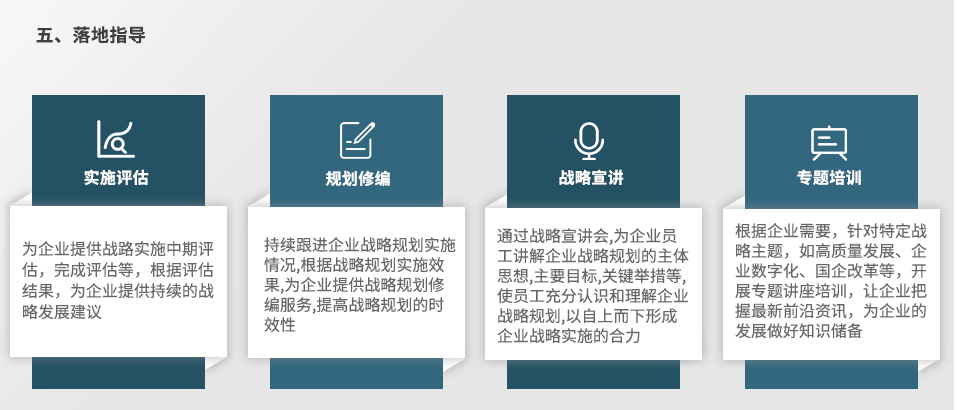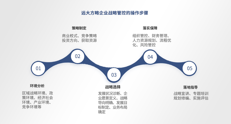 面臨未來更為復雜的發展環境,遠大方略將從環境分析、戰略選擇、策略制定、落實保障、落地指導等方面幫助客戶形成完整的戰略管理體系并推動落地實施。