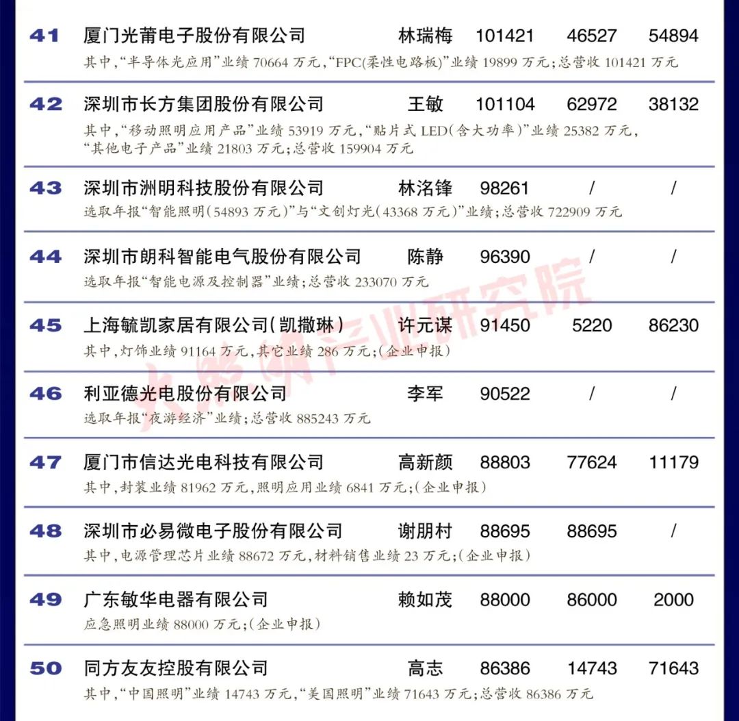 從銷售規模來看,中國led燈排行榜中有3家企業銷 售突破100億元,有4家企業銷售在50 100億元之間,有35家企業銷售在10-50億元之間,有35家企業銷售在5-10億元之間,余23家企業銷售在5億元以下。