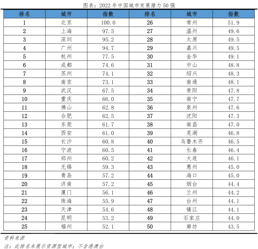 2 2022年中國城市發展潛力排名