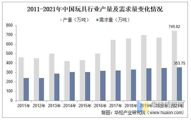 2011-2021年中國玩具行業產量及需求量變化情況