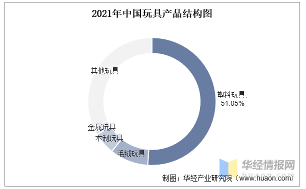 我國是全球最大的玩具制造國,在世界玩具市場上占有舉足輕重的地位。從材質上看,塑料玩具是我國玩具市場第一大細分品類,2021年塑料玩具的市場份額約為51.05%。