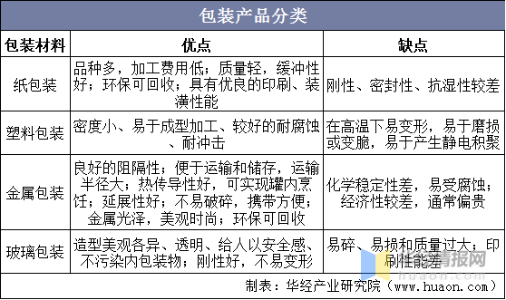 按包裝材料劃分,包裝產品主要分為紙包裝、塑料包裝、金屬包裝和玻璃包裝等四大類。