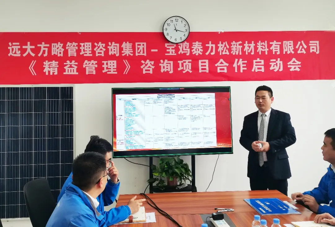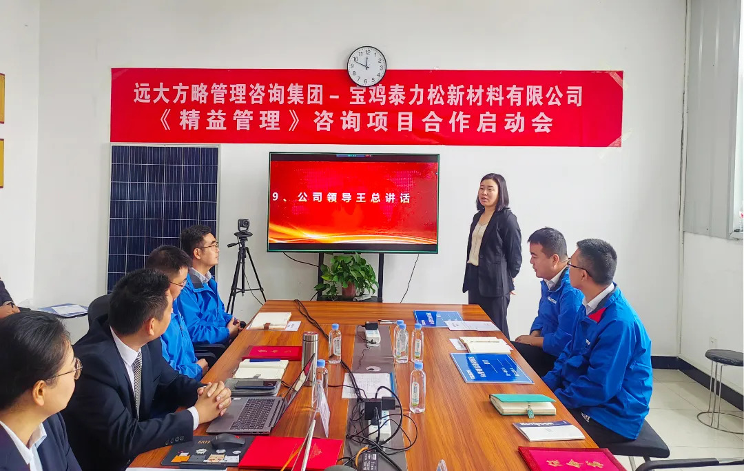 持續改善,邁向卓越。近日,泰力松再次攜手遠大方略開啟管理變革,暨西安泰力松、金壇分公司相繼與遠大方略展開《運營管控與組織能力提升》、《精益管理》咨詢項目合作后,此次寶雞泰力松新材料有限公司(以下簡稱“寶雞泰力松”)攜手遠大方略開啟第三期《精益管理》咨詢項目,幫助企業建立全員精益思維,搭建科學合理的精益管理體系,內部運營實現標準化、規范化、流程化以及制度化,提升整體運營效率,推動企業向高質量發展道路邁進。