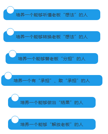 讓老板走出去,花更多的時間去研究市場、研究產品方向。讓操盤手具有自主經營意識思維的人,不管老板在與不在公司,都能讓企業正常運營,推動處理跨部門的事情;為將來企業做大做好準備;使公司戰略可真正的落地執行。通過訓練,提升操盤手解決問題的能力、系統思維能力與實戰運營能力。