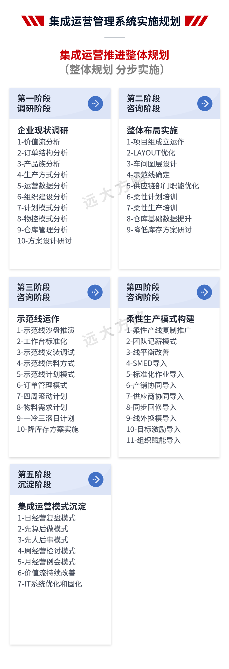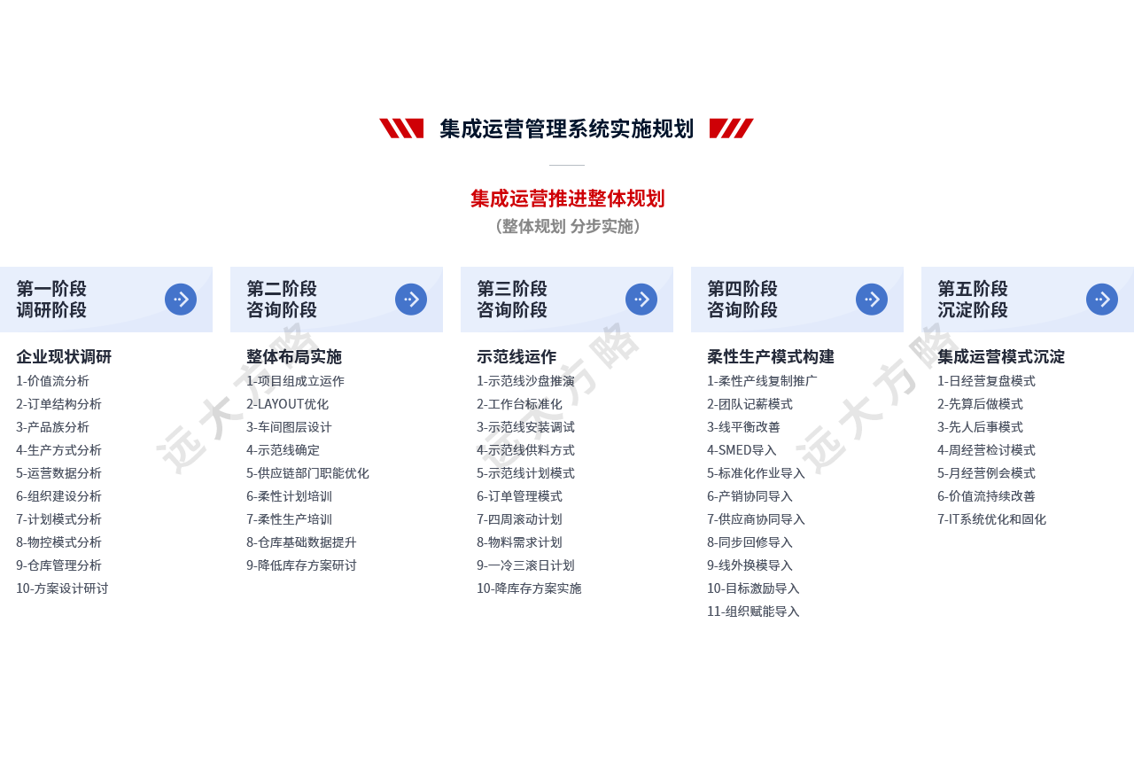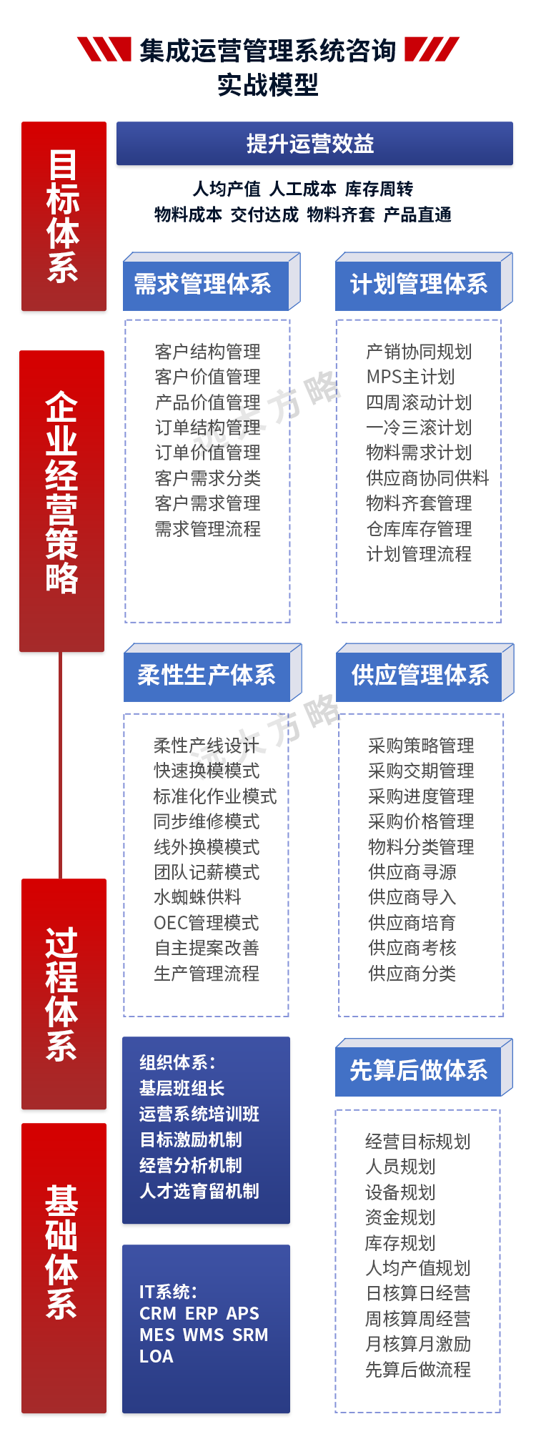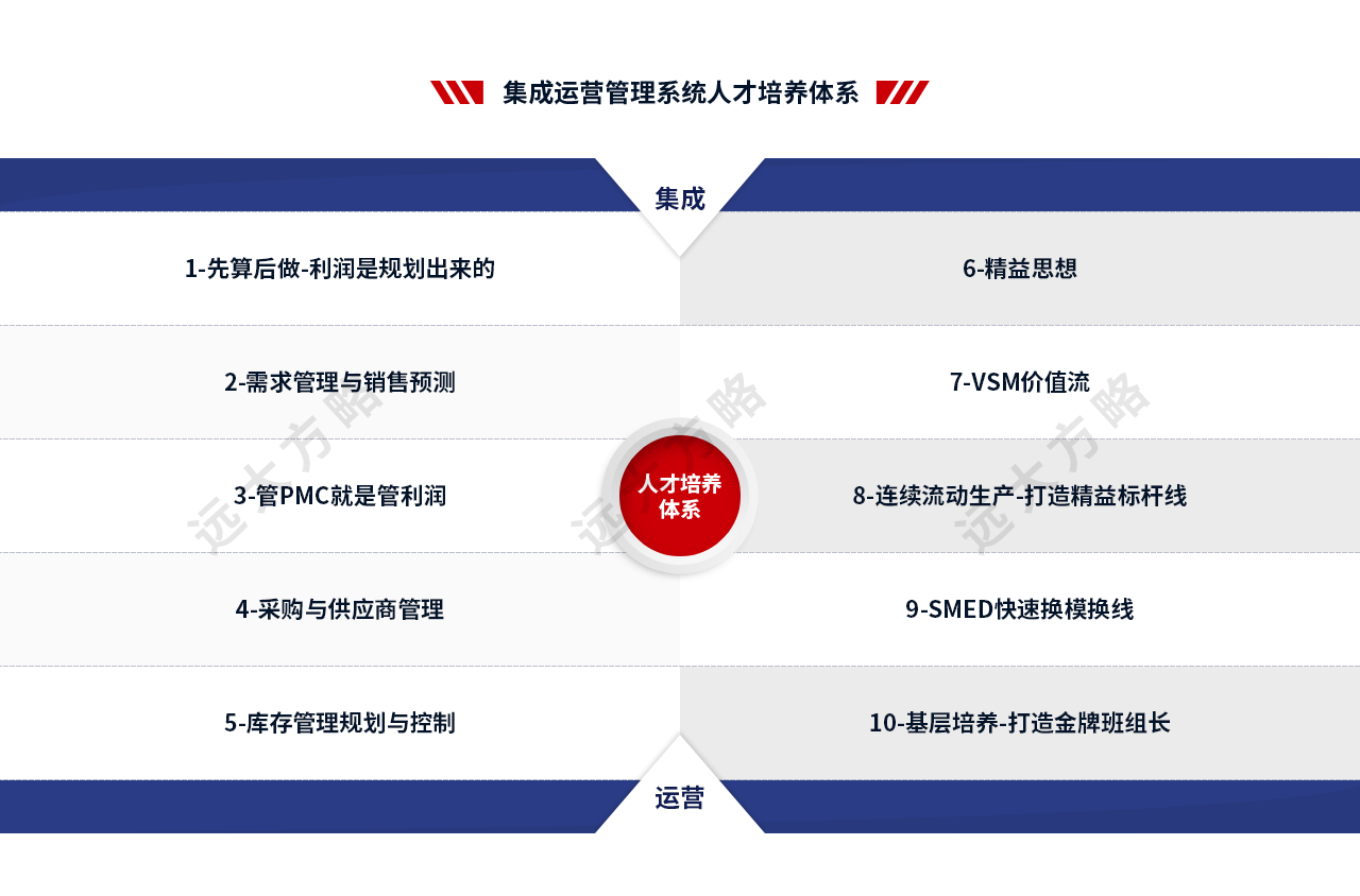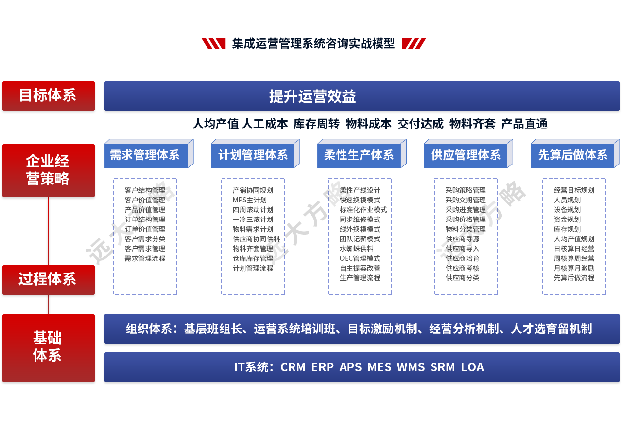 2、輔導模塊:推行卓越運營管理,主要圍繞經營管理中心建立、計劃信息鏈與組織運作信息鏈構建、精益生產模式優化等