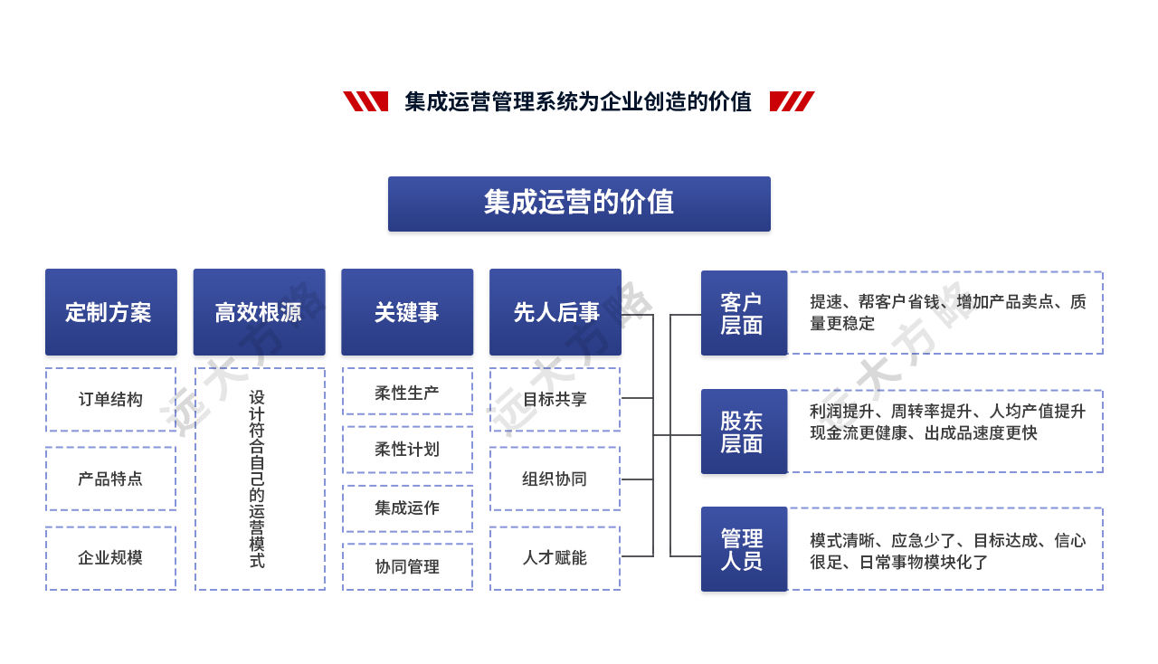 2、輔導模塊:推行卓越運營管理,主要從戰略規劃與經營計劃、組織架構優化與責權利系統構建、核心業務流程梳理、目標與數據信息體系構建、 自主運營體系構建等方面做改善
